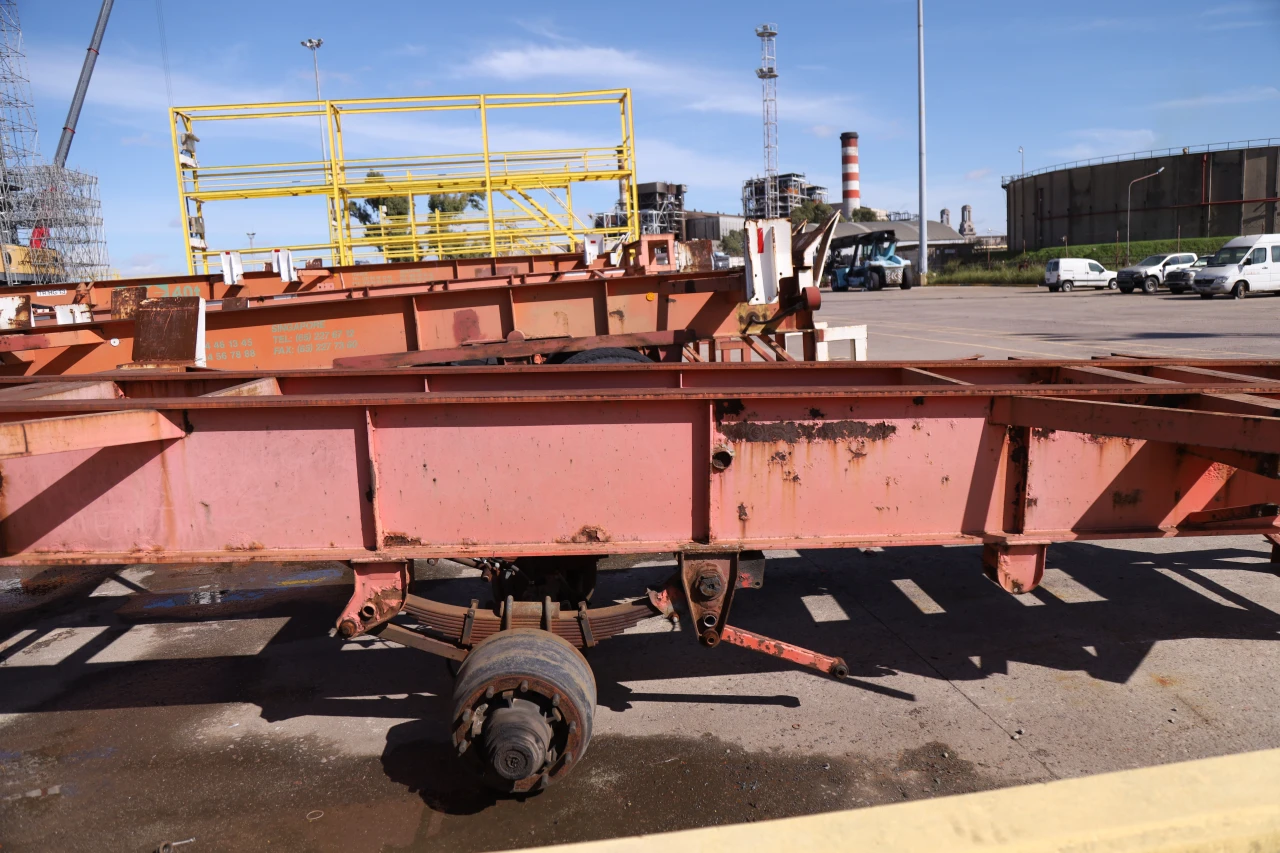 Vehículo con factura, sin documentación para transferir .Semi tipo araña porta contenedor 1 ejes cap. 40T, con faltantes varios |