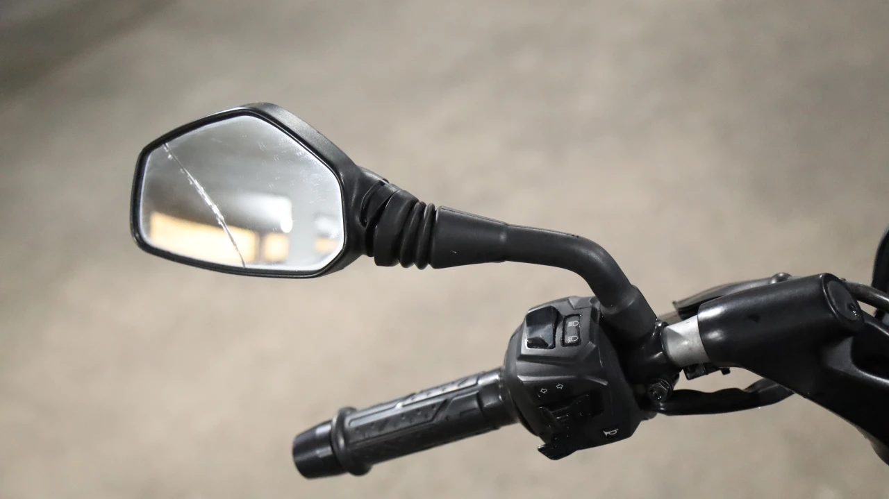 Palanca de embrague rota. Guardabarros delantero roto. Lado derecho con bollo y roto. Cubre Optica delantera rayada. Espejo Izquierdo roto. Pedal derecho torcido. |