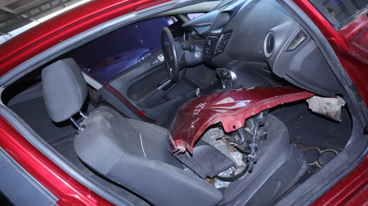 El interior se encuentran varias piezas del motor y otras partes. |